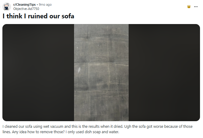 An hour later, the fabric is discolored, the cushion filling is waterlogged, and they're filing a complaint and leaving a review that'll live on the internet forever.